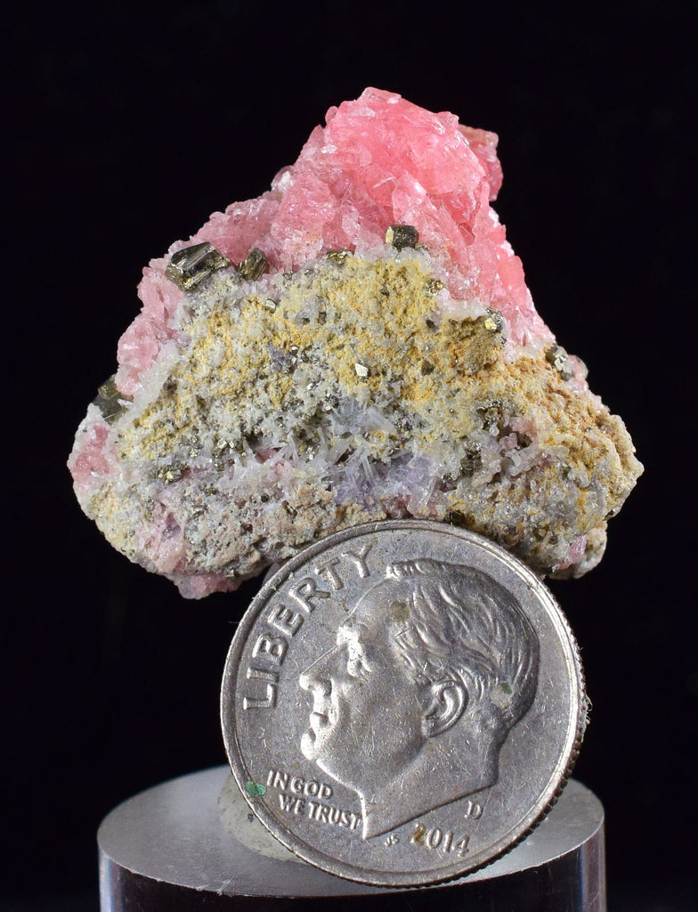 2.7cms RHODOCHROSITE FLUORITE PYRITE Crystal Rhombohedral Wuzhou Guangxi China Mineral Specimen R506