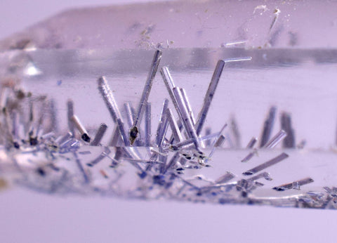 NATURAL DUMORTIERITE CRYSTALS IN POLISHED QUARTZ CRYSTAL