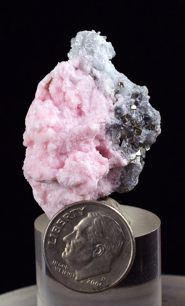 3.8cms RHODOCHROSITE ROSETTE QUARTZ Pyrite Peru Pink Crystals Collector Mineral Specimen Huanzala Mine R547