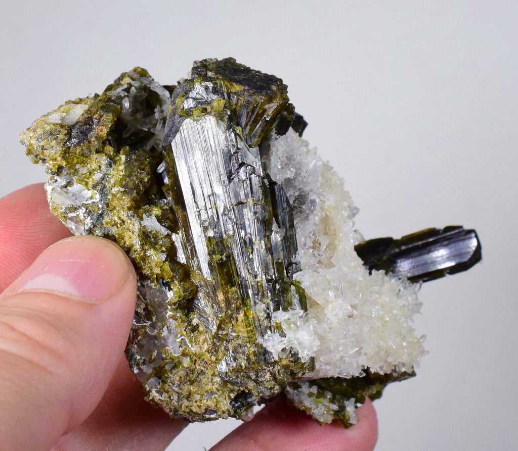 8.5cms EPIDOTE QUARTZ CALCITE Crystals Peru Mineral Specimen Collectors C722